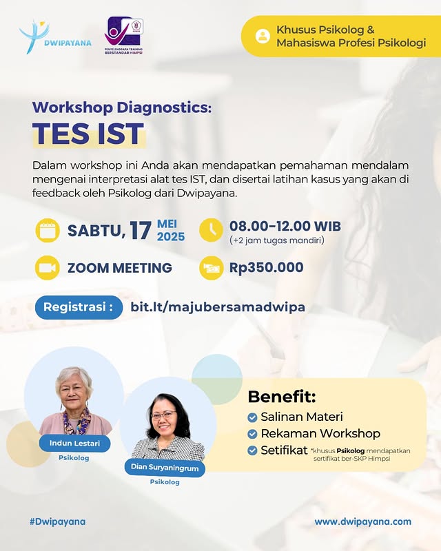 Yuk ikut workshop mengenai penulisan hasil Tes IST!